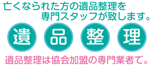 亡くなられた方の遺品整理を専門スタッフが致します。「遺品整理」遺品整理は協会加盟の専門業者で。
